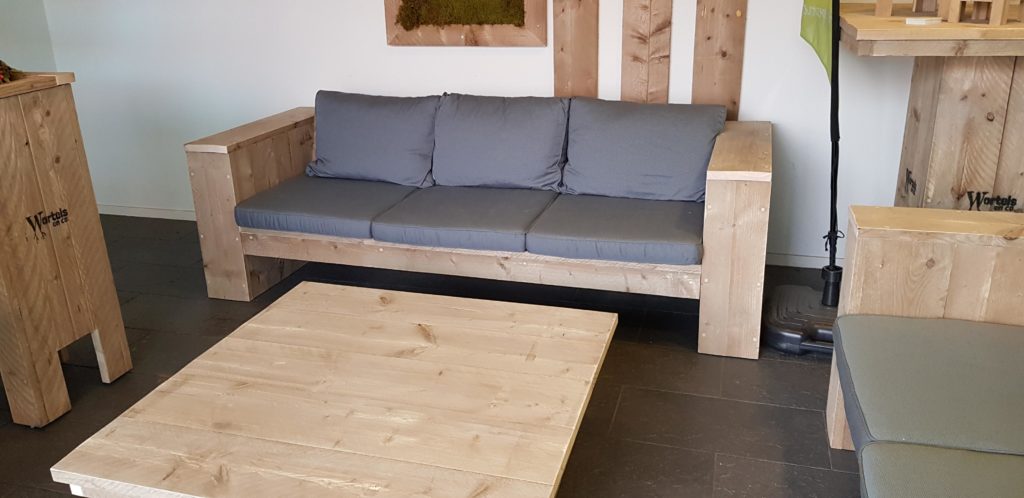 Loungebanken met Wortels en co bakken uitgevoerd in Douglas hout